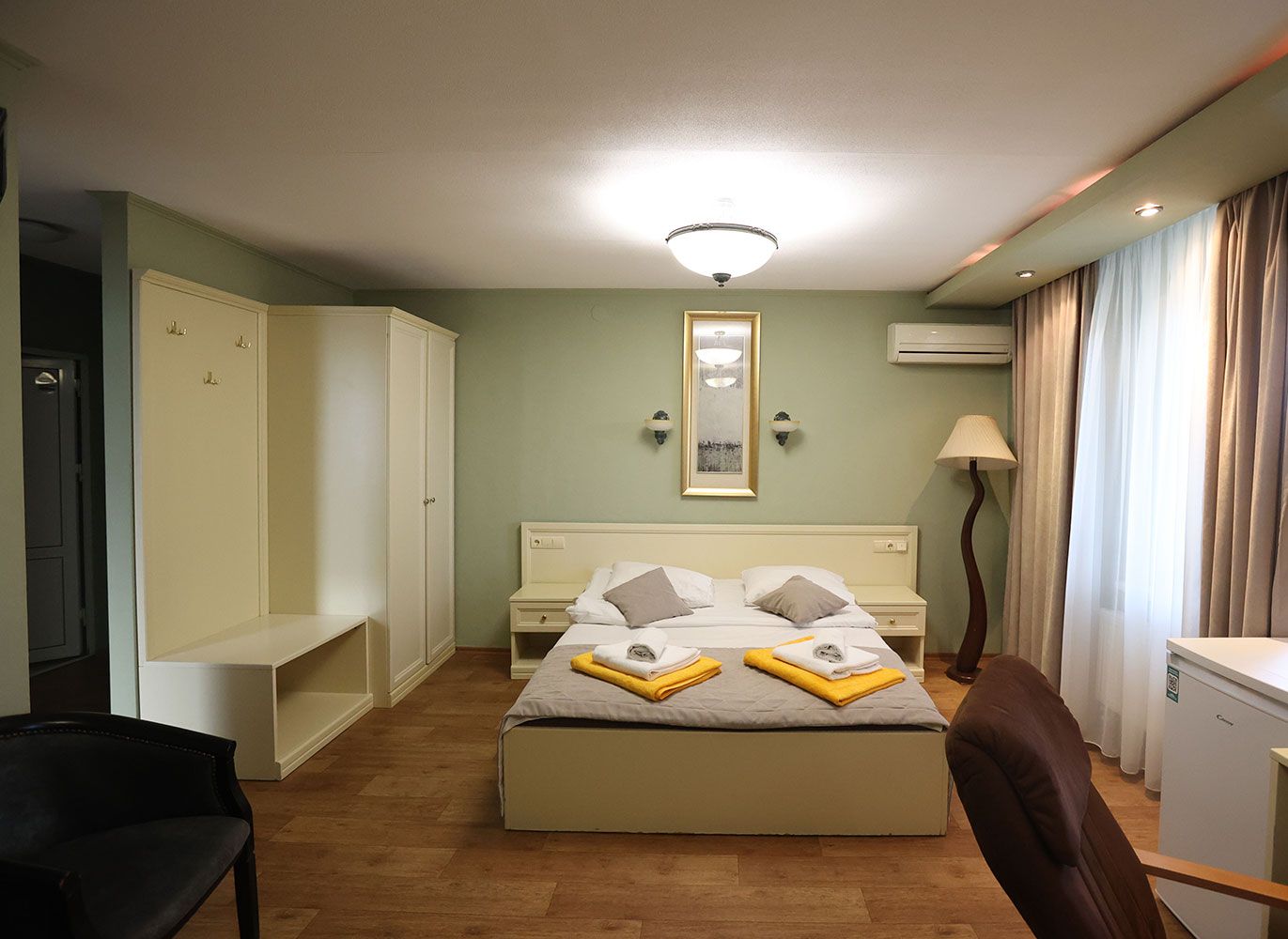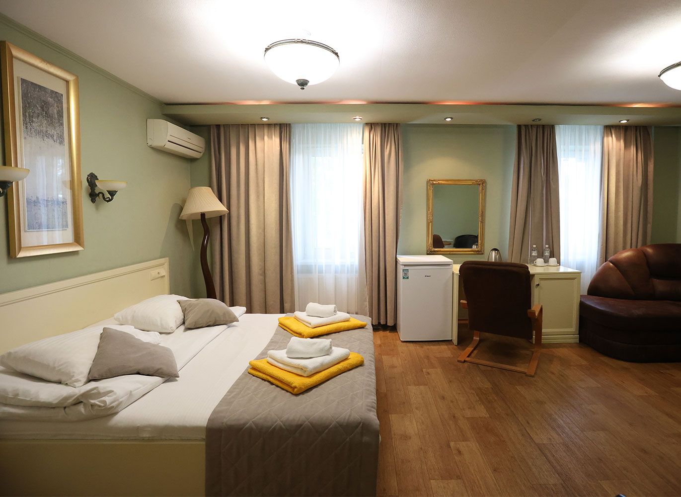 2 номера, площа 40кв.м., 1 кімната, двоспальне ліжко, двохспальний диван, джакузі.